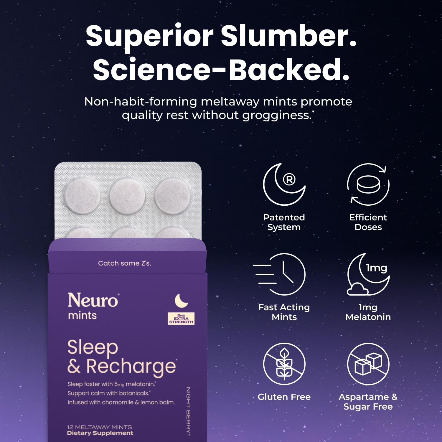 Sleep & Recharge Melatonin Mints 5mg – Night Berry