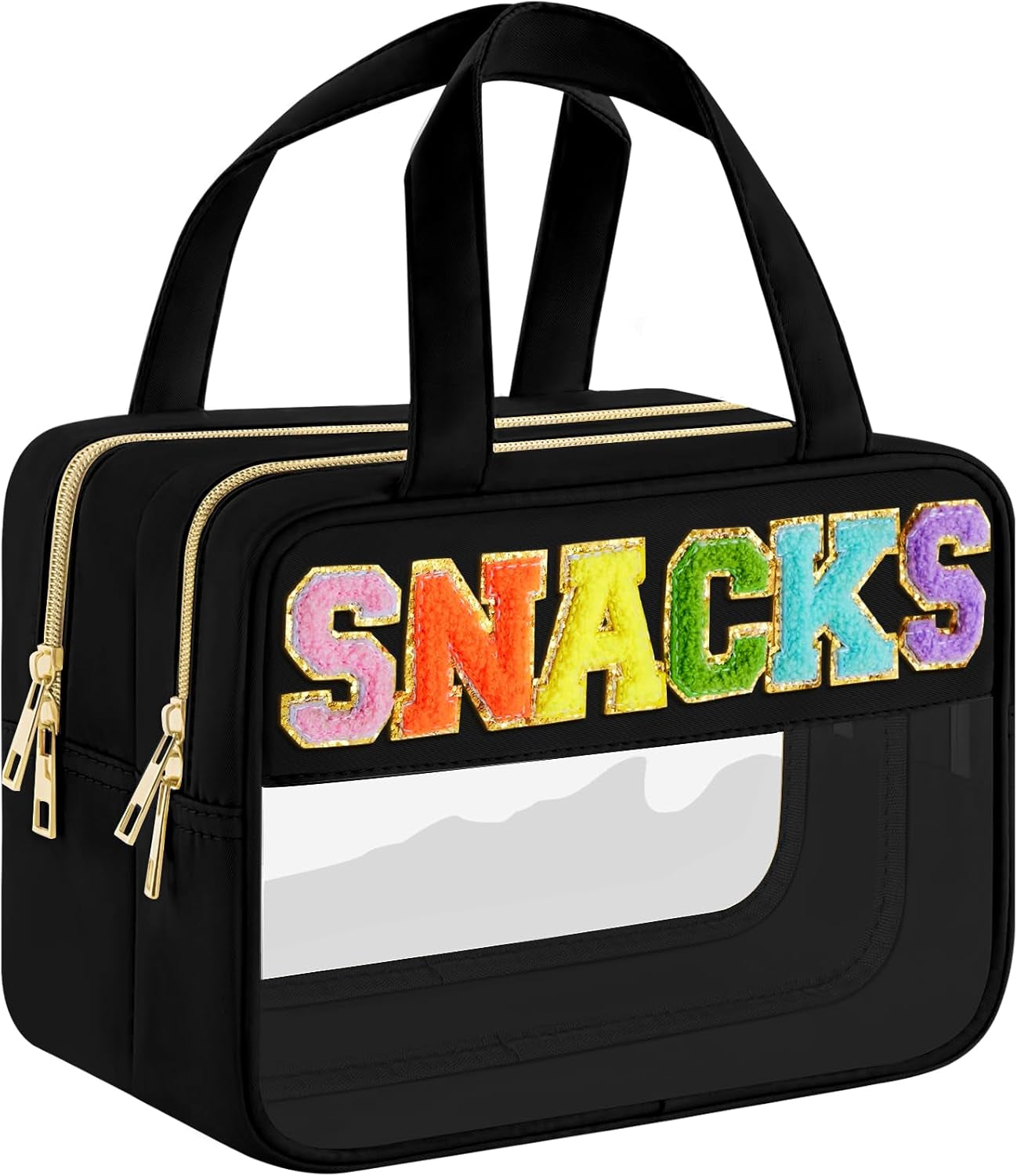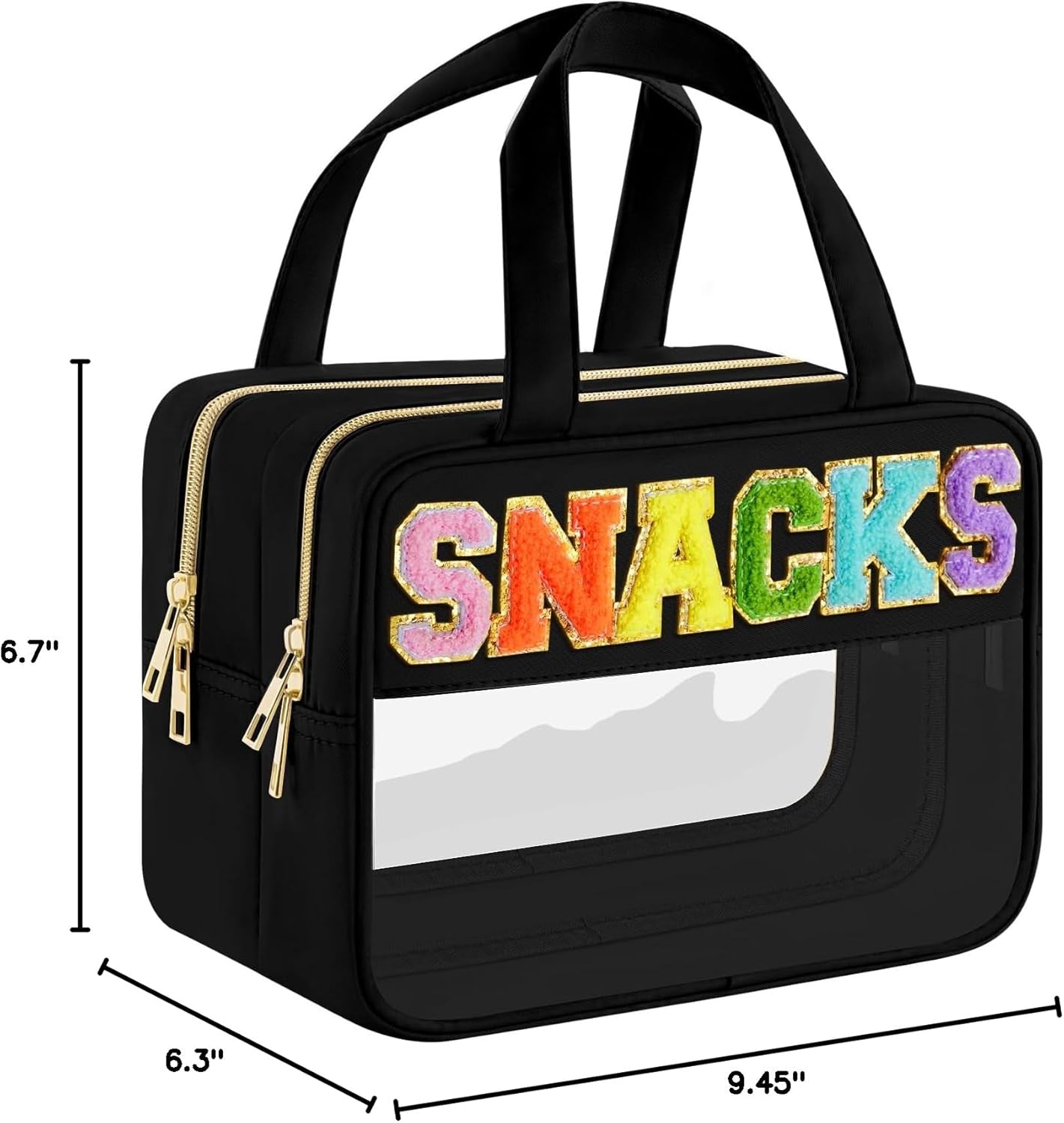【High Quality and Durability】The clear snack bag is equipped with a sturdy metal zip with double sliders, so you don't have to worry about the zip getting stuck. Fine stitching increases the firmness and durability of the spf bag. The combination of transparent PVC and nylon material provides the preppy toiletry bags with waterproof function. This clear pouch is also very easy to clean. You just need to wipe it with a damp cloth to keep its surface clean.