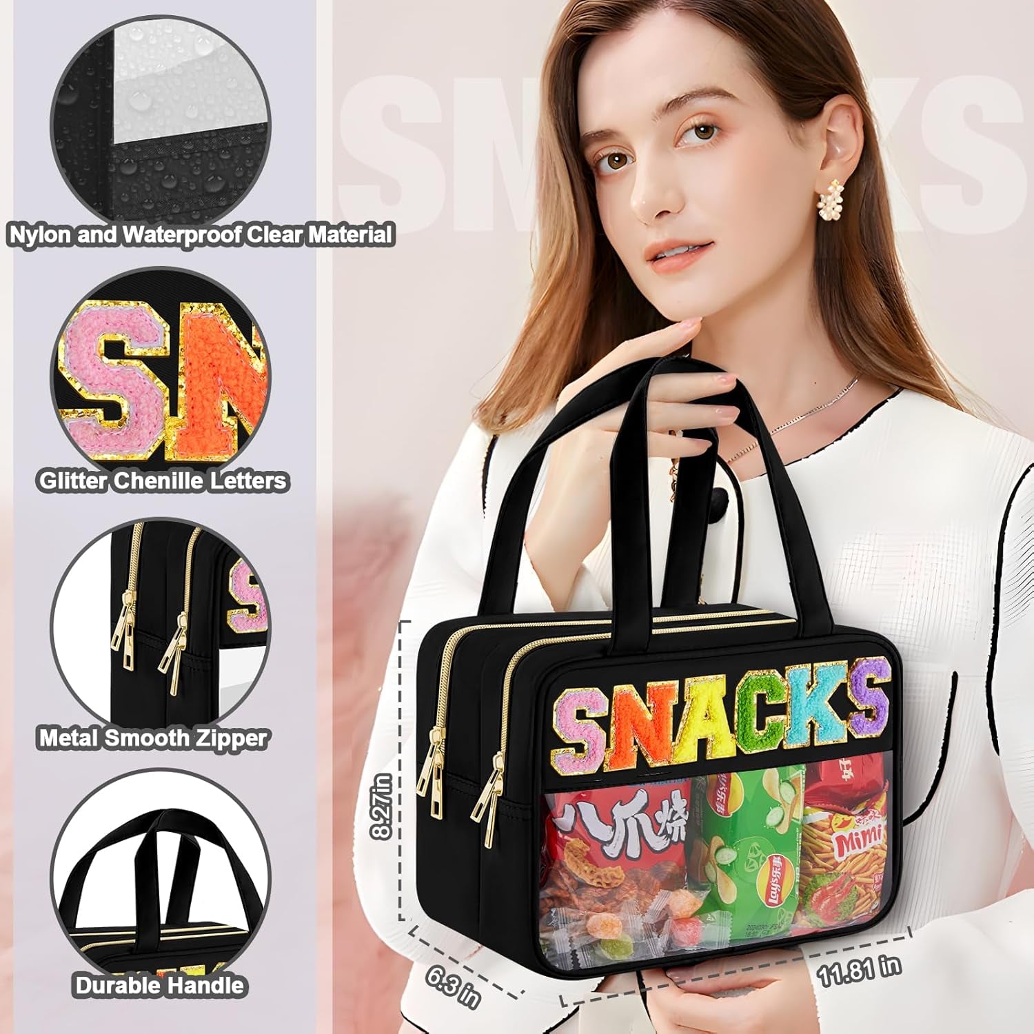 【Unique Exterior Design】Each letter of the chenille letter bag shines brightly, and the pattern of the letters is raised on the surface of the bag, making them appear to be in relief, creating a sense of layering and dimension. The letters "STUFF", "PARTY" and "SNACK" make it easy to sort and organise your belongings. This allows you to better organise and manage your belongings, making it easy to find what you need and keep things nice and tidy and organised.