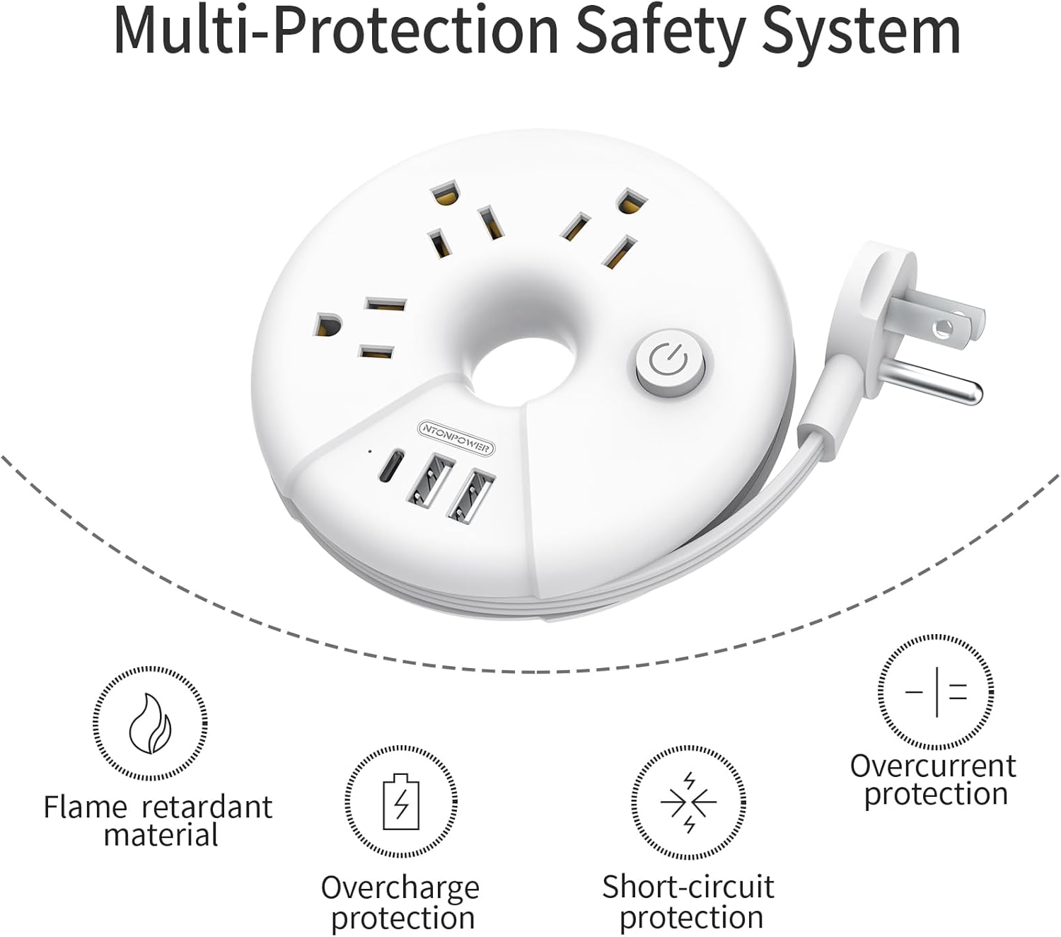 3 outlet power strip is designed to against overcharging, short circuit, overheating, over current.